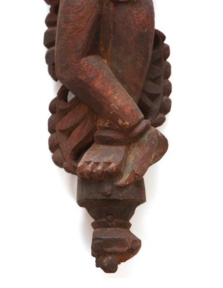 Ce grand coffre porte sur sa face antérieure un médaillon orné d’un décor tantrique centré d’un kapala Il est entouré de vases rituels sur fond de nuages tchi. Autour de ce médaillon, une frise de fleurs alternées d’entrelacs et de frises de grecques entoure un décor de fleurs dans un treillage.