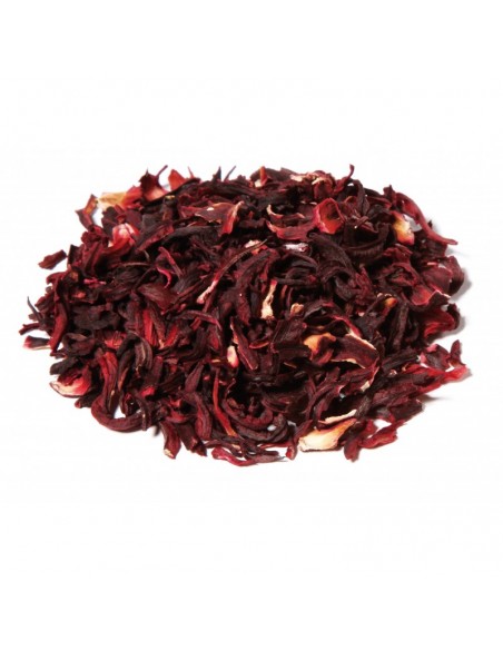 Dried hibiscus flowers with an intense purple color and a sweet and fragrant, sweet and floral, slightly acidic flavor.