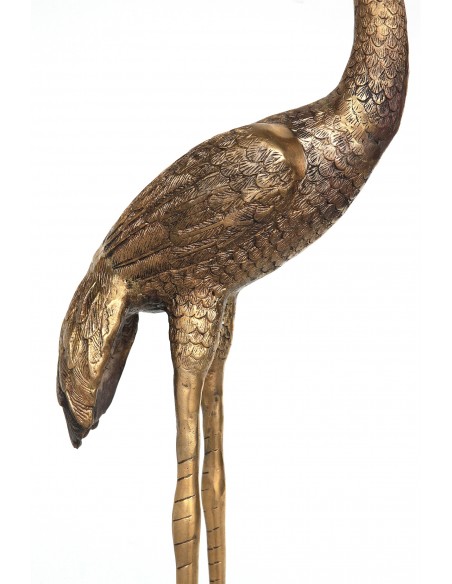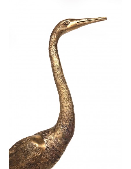 Der langgliedrige und elegante Kranich wird in vielen Kulturen als mächtiges Totemtier verehrt und stellt die Quelle des Lebens dar. In Japan ist die spirituelle Bedeutung des Kranichs die eines heiligen und mystischen Wesens. Diese Statuette ist ein sehr schönes Dekorationsobjekt für eine Kommode, ein Flurmöbel oder einen kleinen Couchtisch.