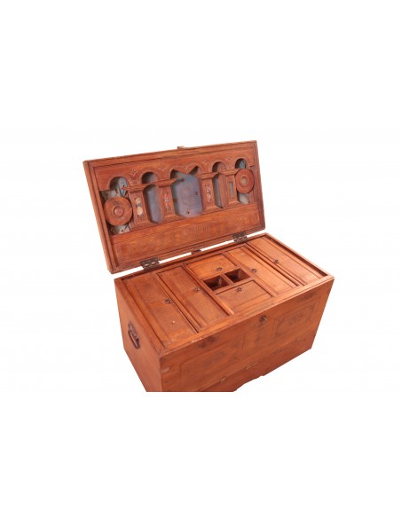 This trunk is as beautiful on the outside as it is on the inside. It is the expression of traditional and artisanal know-how. Composed of mango tree and coming from Rajasthan, this chest offers a multitude of small storage spaces. Both functional and aesthetic, it will brighten up your room beyond compare.
