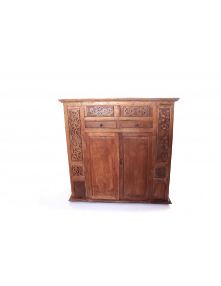 Classique et distinguée, cette commode ancienne en bois massif offre de très jolies finitions et une touche chaleureuse à votre pièce de vie. Toute la beauté du véinage du sheesham ressort pour apporter de l’authenticité et de la luminosité à l’ensemble. Les deux tiroirs ainsi que les deux portes avec leurs poignées en métal offrent un bel espace de rangement. Le dessus de la commode concède quant à lui un beau plateau qui saura sublimer un luminaire ou de la décoration. Idéale comme meuble d’entrée, cette commode pourra également être utilisée dans une chambre pour ranger petit linge et jouets d’enfants.