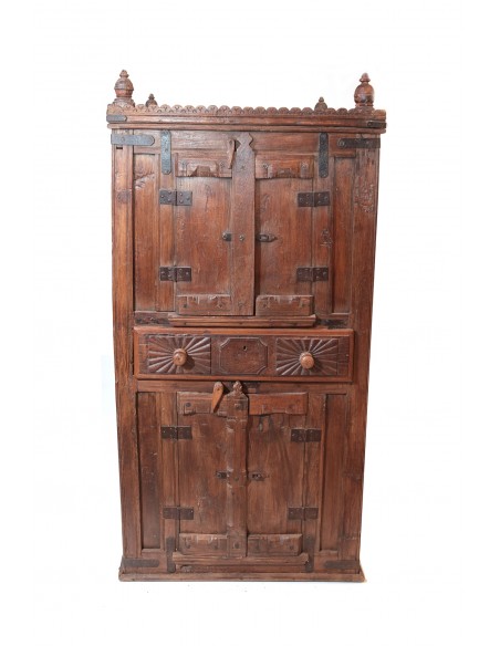 If you appreciate antique furniture, you will inevitably succumb to the charm of this beautiful MUMBAI rosewood cabinet. Complete your old, classic or industrial style with this sumptuous piece of furniture. Ideal in a living room or a bedroom, the brown tones of this piece of furniture will bring a warm atmosphere to your home. Handcrafted in design, this piece will offer you not only a beautiful storage space, but also a drawer, two doors and a wooden tray where you can store your personal belongings, souvenirs or photo frames.