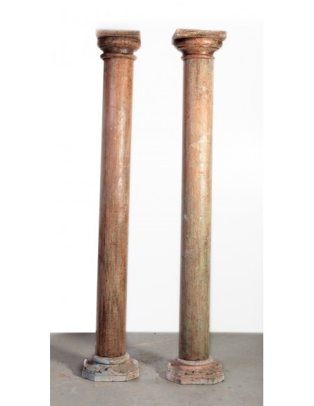 This majestic pair of light wood columns with pastel colored plinths will be a charming addition to your home. They come from eastern India, Tamil Nadu and have the particularity of changing the volume of a room, and in passing underline the frame of your home. Their base is made of stone. Unparalleled in beauty thanks to the richness of their finishes, they will blend in very well with your home.
