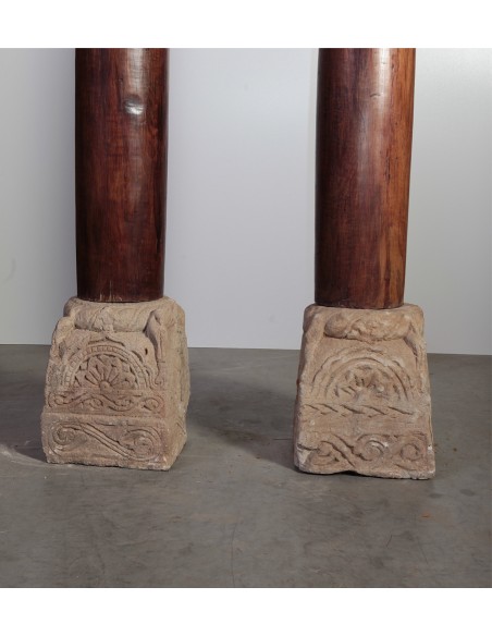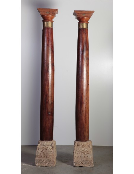 Cette majestueuse paire de colonnes en bois bois satiné très précieux sera un atout charme à votre foyer. Elle proviennent de l'est de l'Inde et ont la particularité de changer le volume d’une pièce, et de souligner au passage la charpente de votre demeure. Leur socle est en pierre. D'une beauté sans pareil de par la richesse de leurs finitions, elles s’intègreront très bien dans votre foyer.