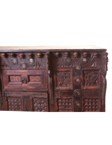 This sublime wedding chest is the very expression of traditional Indian craftsmanship. Its carpentry, its iron strapping and its finishes make it an exceptional object. Composed of teak, it comes from Rajasthan. This type of furniture has always accompanied the different stages of life and has a beautiful storage space. Aesthetic and functional, it will easily find its place in your home.