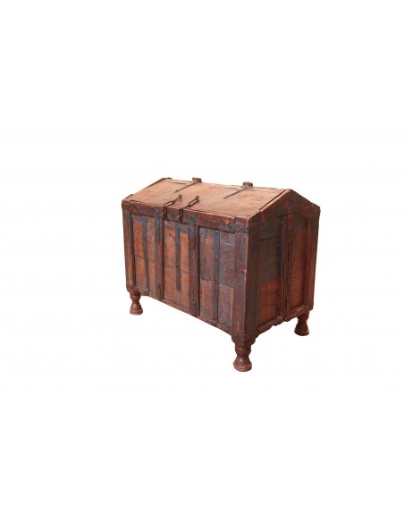 This magnificent wedding chest is the very expression of traditional Indian craftsmanship. The quality of the carpentry, its original structure, its finishes and its bronze fittings make it a true object of goldsmithing. It is made of solid wood and comes from Gujarat in India. This type of property has always accompanied the different stages of life within families. Functional and aesthetic, this chest offers plenty of storage space and will enhance your home beyond measure.