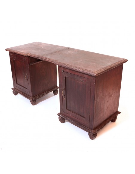 Très élégant tant dans son design que dans ses finitions, ce bureau ancien est idéal pour toute personne recherchant un bureau à la fois compact et fonctionnel. De style plutôt classique, ses pieds travaillés et ses poignées et ses loquets traditionnels en métal rehaussent le tout. Ses deux portes vous offriront un bel espace de rangement. Idéal dans un bureau, surmonté d’un grand miroir, ce meuble peut également faire office de coiffeuse dans une chambre ou de meuble décoratif dans une entrée.