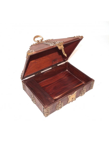 This magnificent old chest is the very expression of traditional and artisanal know-how. The quality of the carpentry and bronze fittings make it a veritable object of goldsmithing. It is made of teak and comes from Gujarat in India. Bright and aesthetic, this chest will embellish your home beyond measure.