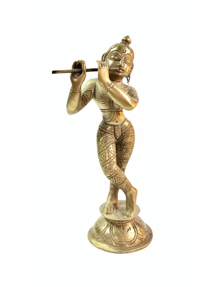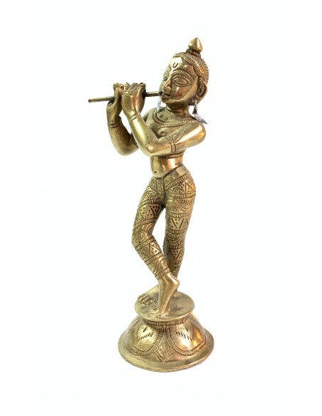 Cette statuette en bronze représente un joueur de flûte sur un socle ovale. Finement travaillée et de conception artisanale, cette figurine égayera votre intérieur sans commune mesure.