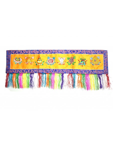 Beautify your interior with this Tibetan wall hanging with the 8 Buddhist symbols and fringes. They create a peaceful and harmonious atmosphere and invite positive energies.