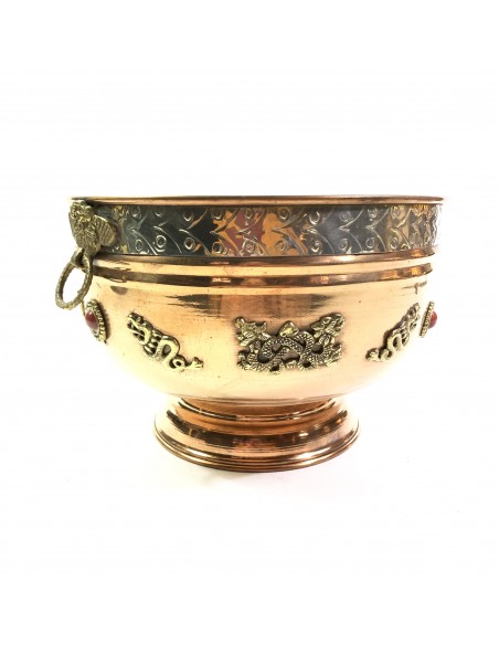 Ce bol tibétain en cuivre est un véritable bijou. Les ornements de dragon en laiton et la forme typique créent une atmosphère asiatique authentique.