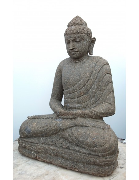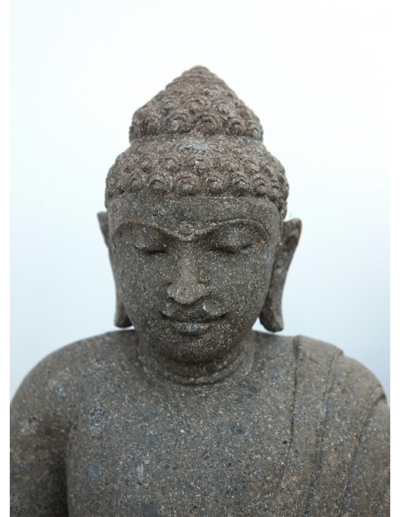 Erliegen Sie dem Charme unserer erhabenen Darstellung des im Lotussitz sitzenden Buddha mit dem Dhyana-Mudra. Die beiden Hände ruhen aufeinander und zeigen zum Himmel. Die rechte Hand ist auf die linke gelegt. Diese Statue besteht aus Vulkangestein, das von unseren Handwerkern in Indonesien rekonstruiert wurde. Lassen Sie sich von der besonderen Aura dieser eindrücklichen Statue inspirieren.
