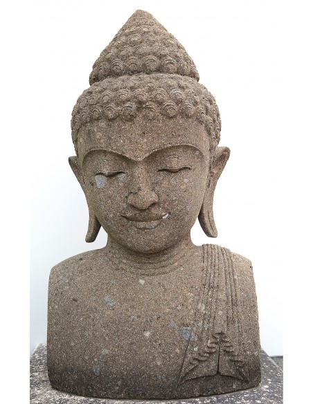 Succumb to the charm of our marvelous representation of the bust of Buddha. In the Sanskrit language, Buddha means awakened. Buddha is a person who has achieved spiritual enlightenment bringing liberation from suffering. It will bring a touch of radiance and serenity to your stay. Made in volcanic stone by our Indonesian artisans, this unique piece is majestic.