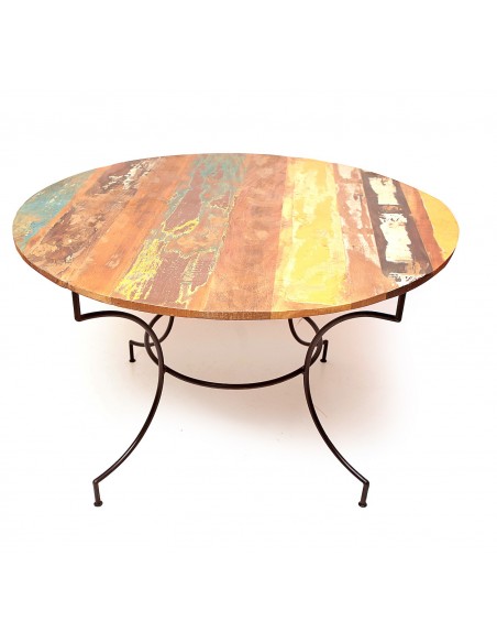 The table is the central element in a dining room or kitchen. It brings together family and friends on all occasions for privileged moments of sharing. Round in shape, the recycled wood dining table meets all needs and will easily find its place. The flagship place in the house, the table has pride of place and its style will bring a unique atmosphere to your home. Its recycled wood top combined with wrought iron legs give it a modern style. The quality of the materials gives it criteria of durability, know-how and taste.