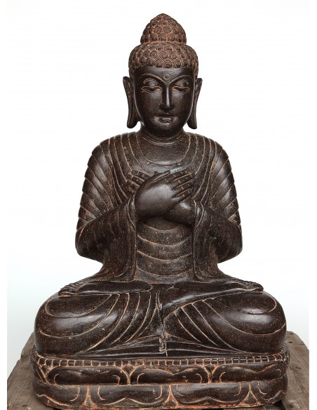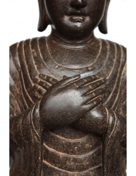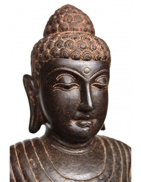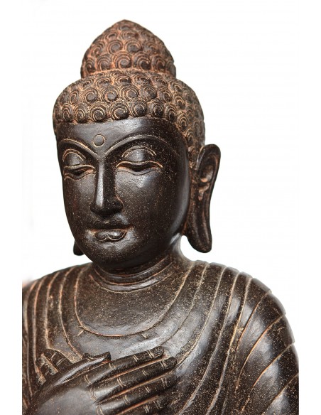 Testa di Shiva scolpita nella massa di un blocco di pietra verde. Shiva è il dio indù della distruzione. Il viso di Shiva è bello e liscio. I suoi occhi sono abbassati all'introspezione. Ha una fiamma o un terzo occhio sulla fronte. Le sue labbra sono piene e larghe. Shiva indossa un bellissimo copricapo composto da tre livelli, nonché orecchini e...