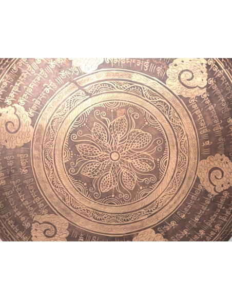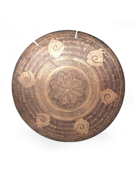 Tibetische Gongs sind traditionelle und geheimnisumwitterte Gegenstände. Als wahres Erbe der Bronzezeit transzendieren sie die Zeremonien mit ihren magischen und betörenden Klängen. Jedes Stück ist ein Unikat und verleiht eine einzigartige Akustik. Durch den Anschlag des Gongklöppel an die gehämmerte Schale dieses Gongs entsteht eine klangliche Harmonie voller Intensität, Inspiration, Entspannung - eine Offenbarung.