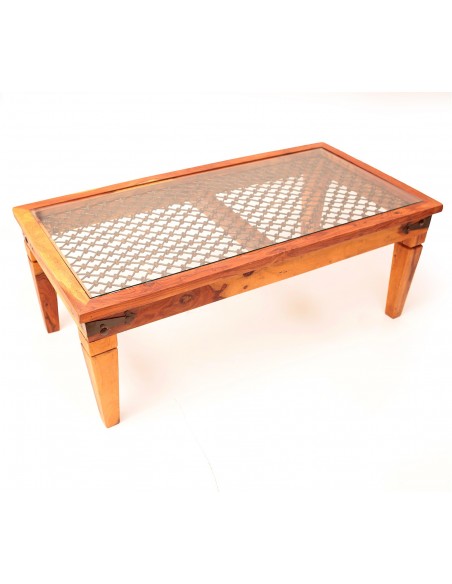 Cette table basse de Jodhpur sera l'élément central de votre salon. De forme rectangulaire ou carrée, elle réunira votre famille et vos amis pour des moments privilégiés. Concédant un style singulier avec les matériaux utilisés, elle créera une atmosphère à l'ensemble du salon tout en liant les autres meubles les uns avec les autres. Le cadrage en fer forgé et les ferrures au dessus de chaque pied apportent un vrai cachet. Le Sheesham, ou bois de rose des Indes est un bois aux teintes sombres, marbré de noir et de pourpre. Originaire du Nord de l'Inde, ce bois a une texture uniforme et offre des tonalités allant de l'or au brun foncé. Extrêmement dense, il est l'équivalent oriental du noyer massif. Très résistante, cette matière noble demande peu d'entretien et saura résister aux assauts du temps. Tous les meubles que nous proposons sont en bois massif et faits main par des artisans du Nord de l’Inde. Quelques petites nuances peuvent exister rendant chaque pièce singulière. Le véinage de ce bois est magnifique. En plus d’avoir un meuble réalisé avec soin et savoir-faire, vous aidez des artisans à perpétuer leurs traditions.