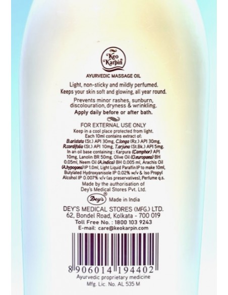 Keo Karpin Ayurvedisches Massageöl ist ein pflanzliches Körperöl mit Sandelholz, Olivenöl, Neem und Bold.