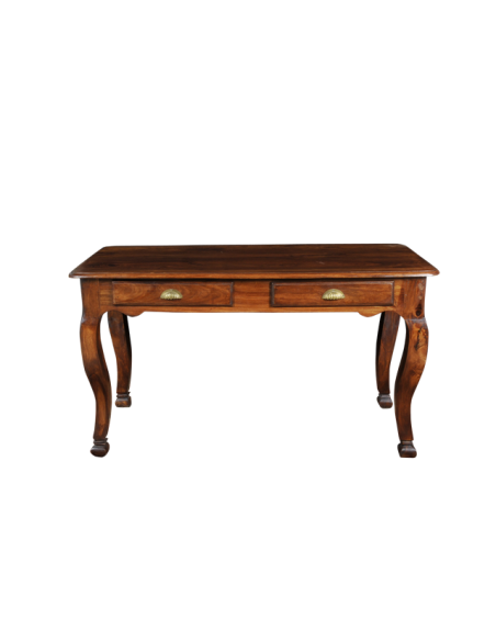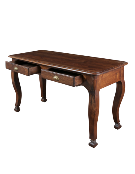 Le bureau PRESTIGE est un intemporel qui fera de votre bureau un lieu de travail chaleureux et studieux. Les poignées dorées des tiroirs font penser à de jolis coquillages qui viennent égayer l’ensemble et les pieds tout en courbures et en rondeurs apportent élégance et charme à cette pièce. Son large plateau offre une belle surface de travail et ses tiroirs, des espaces de rangement non négligeables pour vos documents. Idéal dans un coin bureau, ce meuble pourra également s’insérer à merveille dans votre pièce à vivre ou une entrée.