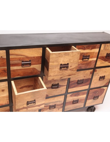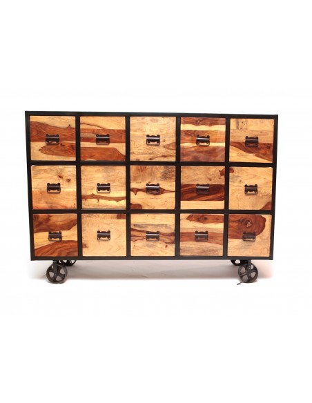 De conception artisanale, la belle console CHAKORI, en bois de chemin de fer, est entièrement réalisée à la main par nos artisans en Inde. Très fonctionnelle, celle-ci est composée de trois tiroirs ainsi que de plusieurs espaces de rangement. Elle vous accueillera chaleureusement avec ses teintes beiges et saura facilement s'adapter à un style contemporain.