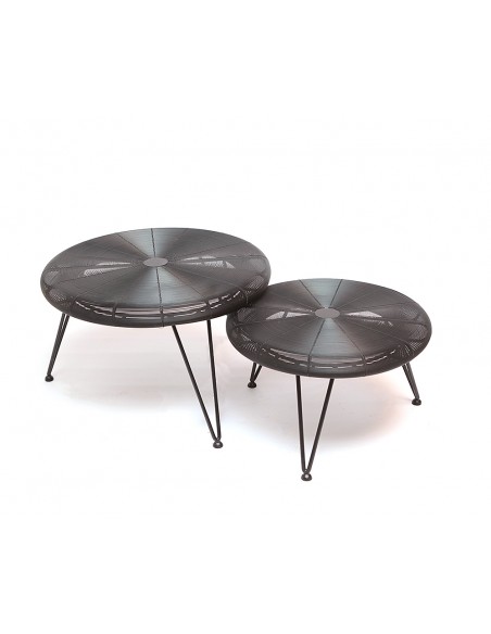 Kleiner Couchtisch aus recyceltem Holz und Metall.