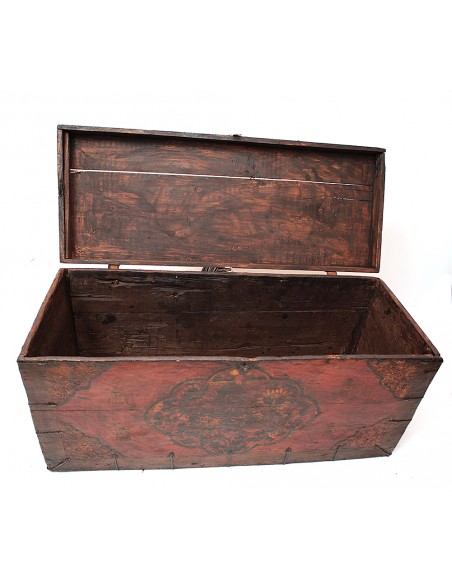 Ce magnifique coffre ancien est l'expression du savoir-faire traditionnel et artisanal tibétain. Ce type de d'article a de tout temps accompagné les différentes étapes de la vie des familles. A la fois fonctionnel et décoratif, ce coffre est une pièce unique exceptionnel qui garde avec elle l'histoire de plusieurs deci