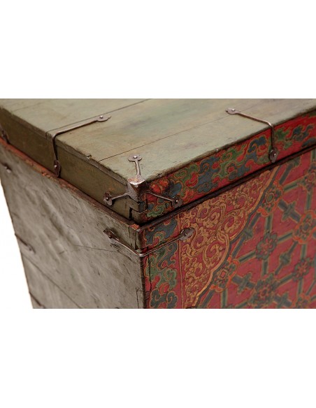 This magnificent old chest is the expression of traditional Tibetan craftsmanship. This type of article has always accompanied the different stages of family life. Both functional and decorative, this chest is an exceptional unique piece that keeps with it the history of several decades.