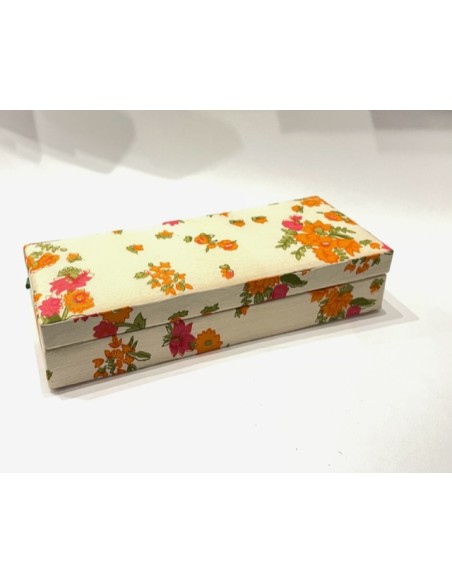 La boîte en bois élégant, dont les côtes sont finement ciselés affiche une partie supérieure ajouré qui joue avec les reliefs. Fruit d'un travail artisanal, les motifs floraux nous entrainent sur les routes du monde, et nous laisse rêver au temps des palais des Maharajahs. Idéale pour ranger bijoux et accessoires, cette boîte trouvera sa place dans votre dressing ou sur une commode.