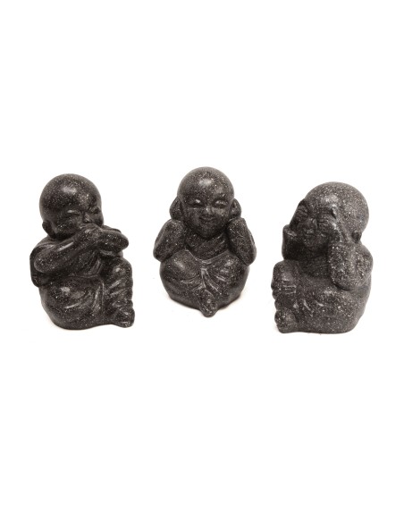 Pour une ambiance tranquille et zen dans votre jardin, cette statue en pierre reconstituée et taillée à la main avec un rendu unique concède une ambiance tranquille et zen sans commune mesure. Cette dernière est composée des trois moines reprenant les singes de la sagesse. Ce symbole asiatique comprend trois singes dont chacun se couvre une partie différente du visage : les yeux, les oreilles et la bouche. Cela forme une sorte de maxime picturale "ne rien voir, ne rien entendre et ne rien dire de mal". À qui suivrait cette maxime, il n'arriverait que du bien. Ces moines bouddhistes incarnent le secret du bonheur et leur aura illuminera votre habitation.