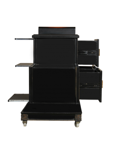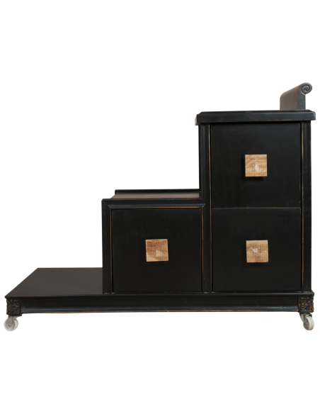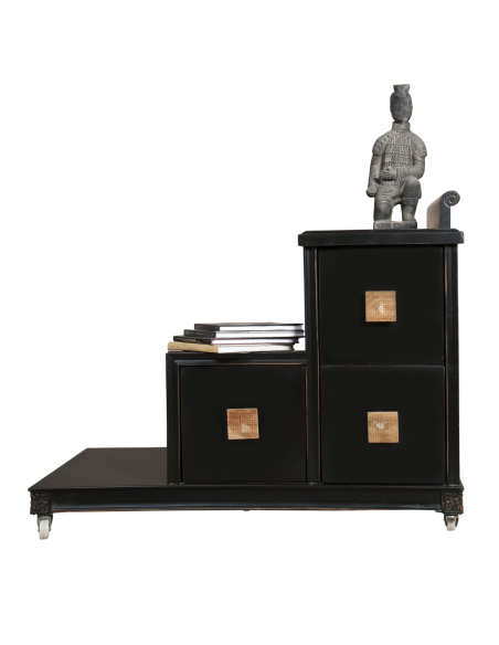 Very elegant in its design, the YIZI staircase cabinet brings to your interior that Asian touch that we love so much. With three drawers on one side and three retractable trays, this piece of furniture is original and has plenty of storage space. It also concedes three installation spaces that can easily accommodate your plants and other small decorative items. Mounted on casters, it is easy to move and will fit easily into a living room or bedroom.