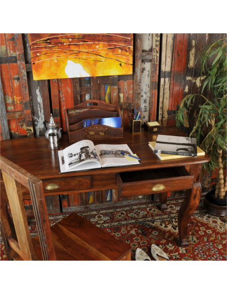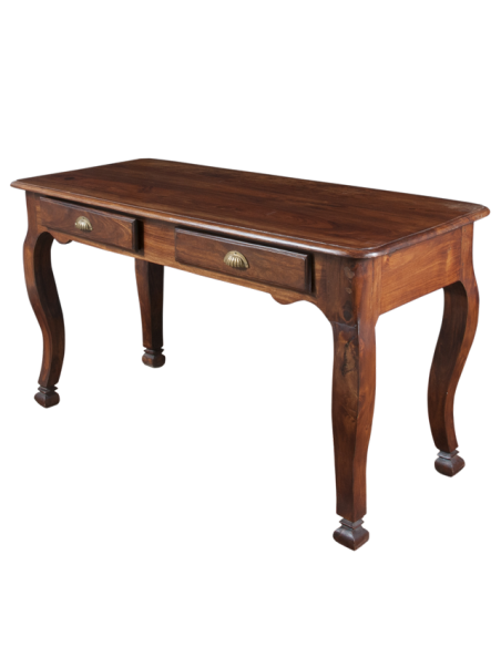 La scrivania PRESTIGE è un pezzo senza tempo che renderà il tuo ufficio un luogo caldo e studioso in cui lavorare. Le maniglie dorate dei cassetti ricordano graziose conchiglie che rallegrano l'insieme e i piedini curvi e arrotondati conferiscono eleganza e fascino a questo pezzo. Il suo ampio piano offre una bella superficie di lavoro e i suoi cassetti, uno spazio di archiviazione significativo per i tuoi documenti. Ideale in una zona ufficio, questo mobile può adattarsi perfettamente anche al tuo soggiorno o corridoio.
