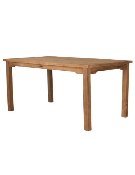 Table de jardin en teck massif au design simple et élégant. Le teck est un bois précieux et imputrescible qui est très résistant aux qualités multiples et qui supporte parfaitement une utilisation en extérieur. C’est un bois agréable à travailler qui est soyeux au toucher. Les tables de jardin en teck et en bois composent un salon d’été, pour déjeuner au soleil ou prendre un apéritif au frais ! De la table rectangulaire pour un petit-déjeuner à deux sur le balcon aux grandes tables familiales, leurs formes s’adaptent à votre espace de vie outdoor. Le teck résiste parfaitement au grand air et apporte sa durabilité à votre table d’extérieur teintée d'exotisme.
