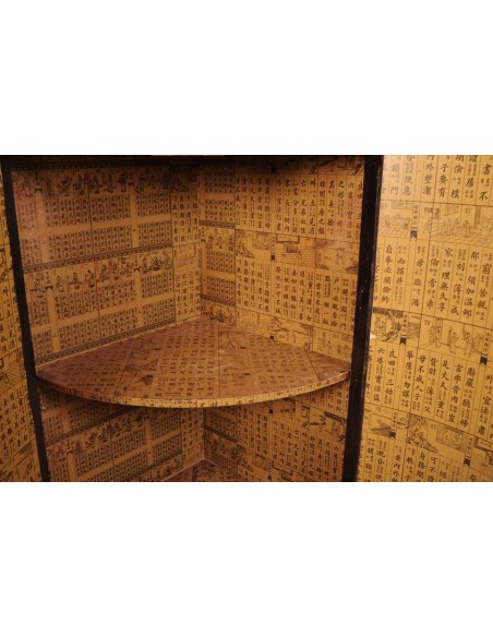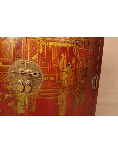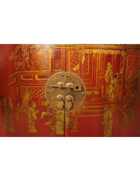 Les ébénistes chinois utilisent principalement l’orme dans leur conception de mobilier. Plus résistant et plus souple que le chêne, l’orme est un bois ferme, assez dur et avec un véinage magnifique. La finition « cuir peint » est une technique chinoise traditionnelle qui consiste à recouvrir le mobilier avec du cuir reconstitué allant du rouge au bordeaux selon l'exposition et le fini du vernis et à y peindre différents motifs. Ces derniers représentent principalement des scènes de vie des temps anciens, des fleurs et des animaux. Les intérieurs quant à eux sont recouverts de reproduction de calendriers lunaires. Le rendu de ces meubles est unique tant un niveau visuel qu’au niveau du toucher.