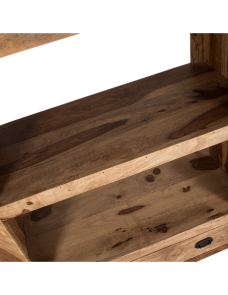 Le Sheesham, ou bois de rose des Indes est un bois, aux teintes sombres, marbré de noir et de pourpre. Originaire du Nord de l'Inde, ce bois a une texture uniforme et offre des tonalités allant de l'or au brun foncé. Extrêmement dense, il est l'équivalent oriental du noyer massif. Très résistante, cette matière noble demande peu d'entretien et saura résister aux assauts du temps. Tous les meubles que nous proposons sont en bois massif et faits main par des artisans du Nord de l’Inde. Quelques petites nuances peuvent avoir lieu et rendent chaque pièce authentique et unique. En plus d’avoir un meuble réalisé avec soin et savoir-faire, vous aidez des artisans à perpétuer leurs traditions.