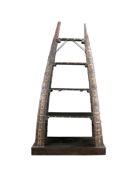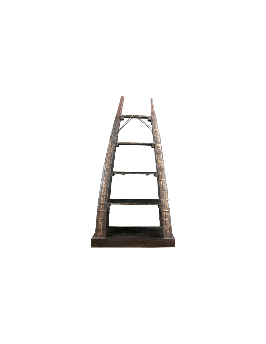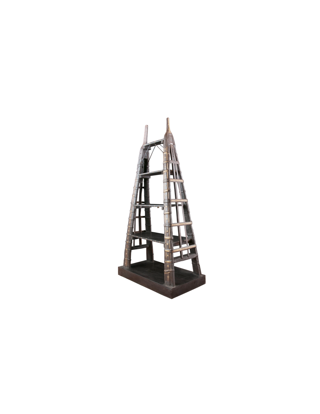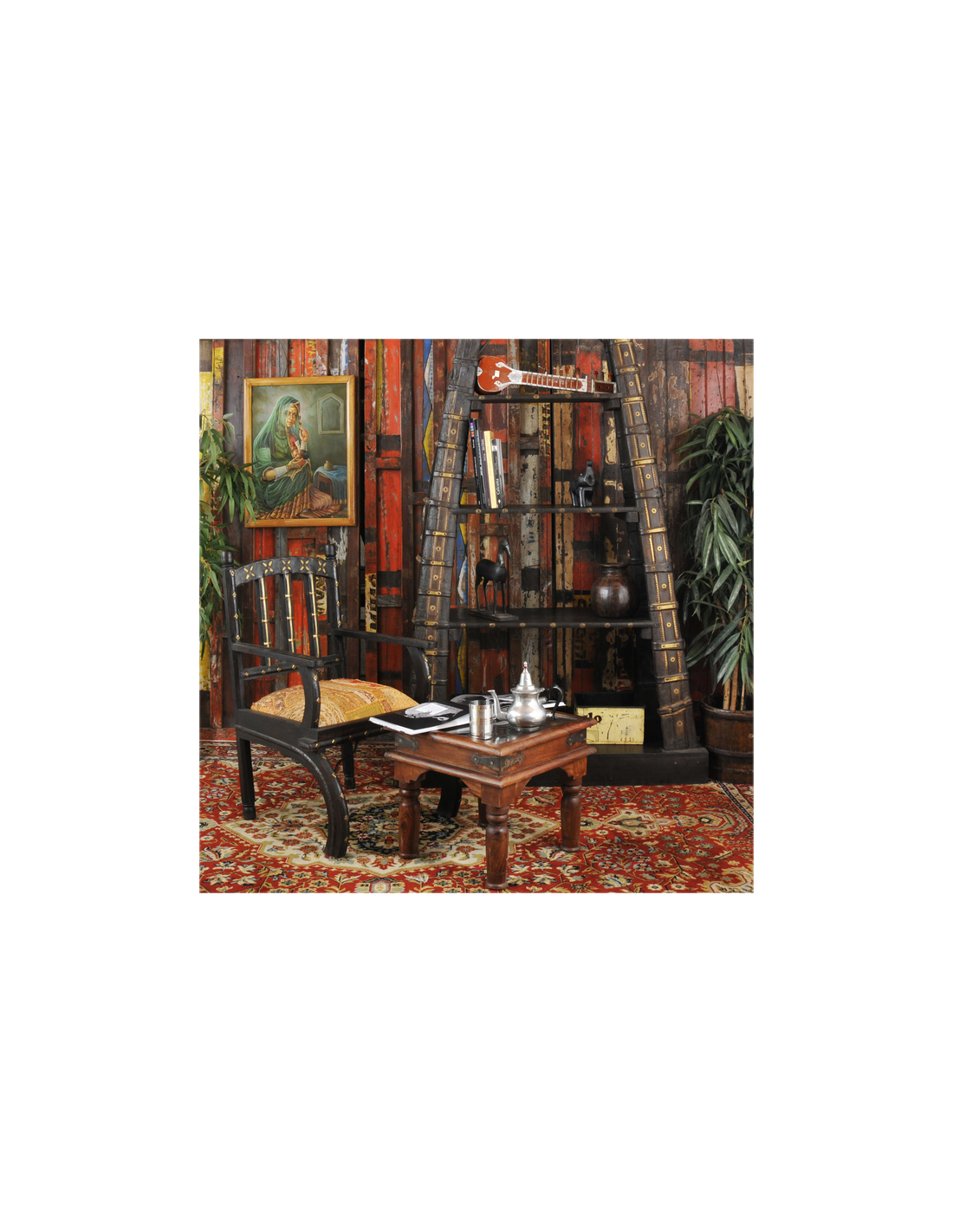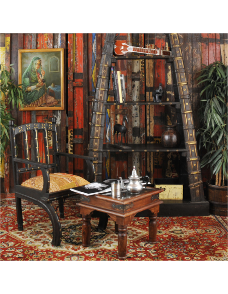 Vénérée en Inde depuis des millénaires, la vache est considérée comme un animal sacré qui fait partie du quotidien des indiens. GAAY signifie littéralement vache en Hindi et cette étagère vous transportera directement dans les champs de la campagne indienne. Réalisée à partir d’un ancien char à bœuf, cette pièce atypique offre des finitions en laiton et différents renforts en acier. Elle comporte quatre tablars qui accueilleront différents objets et sublimeront un luminaire ou de la décoration. Cette étagère fera souffler un vent de voyages et d’évasion sur votre intérieur.