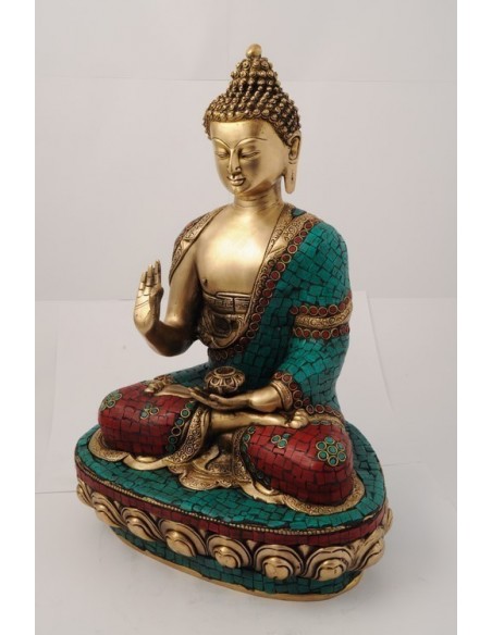 Statue en bronze et mosaïques Bouddha "Vitarka"