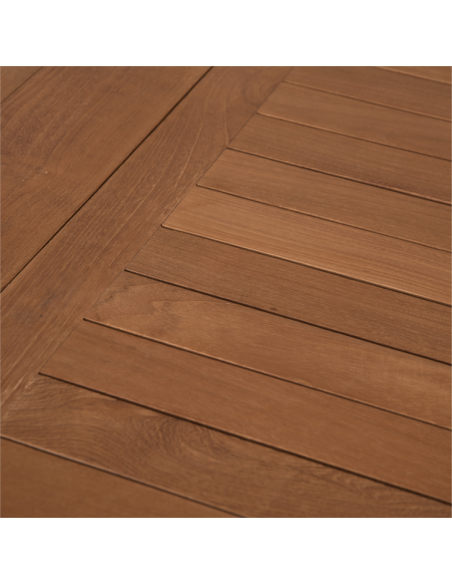 Entretien : Si vous aimez la couleur originale du teck, nous vous conseillons un simple nettoyage occasionnel à l’eau savonneuse. Si vous souhaitez le protéger, il convient d’utiliser de l’huile de teck.
