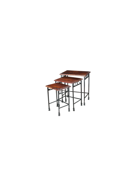Réalisées en bois de rose et en fer forgé, les petites tables gigognes MADRAS à l’esprit colonial sont l’élément idéal pour moduler votre intérieur avec esthétisme. À utiliser seules ou en lot, elles permettent de créer des tables ou des assises d’appoint en fonction de vos besoins. Le mélange de bois et de fer forgé leur apportent un petit côté vintage très apprécié qui s’intégrera volontiers dans tout type d’ambiance. Ces tables sont disponibles en trois tailles.