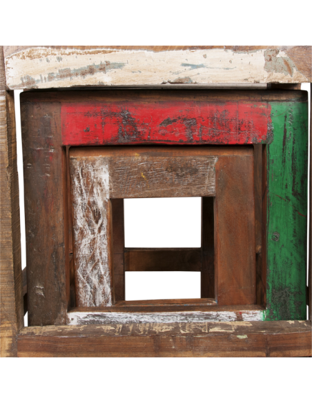 Dans une volonté de s’inscrire dans une démarche éco responsable, tous nos bois recyclés sont issus d'anciennes habitations, de ridelles et de frontons de bateaux ou de camions. L'essence des bois auxquels nous avons donné une seconde vie peut être en teck, manguier, sheesham ou épineux. Nos meubles sont donc uniques et de conception artisanale. Idée déco originale, nous valorisons les matières en créant des pièces au design industriel et à l’esprit loft qui sauront s’intégrer dans votre intérieur. Les teintes peuvent varier selon les bois utilisés. Nous sommes à votre service pour vous proposer des pièces en harmonie les unes avec les autres et qui trouveront leur place dans tout type d’habitat.