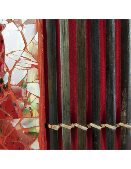 This MOCAI floor lamp is as pretty off as it is on. It will bring a natural and colorful atmosphere to your room and decorate it with aesthetics. Handcrafted in design, each piece is unique. The light diffuses through the mosaic, its two bulb locations and its bamboo stems. This lamp concedes a warm, chic and authentic touch. Ideal in a living room, it will bring a subdued atmosphere to a bedroom.