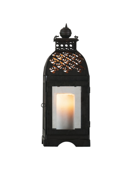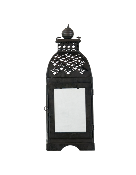 La lanterna è un elemento essenziale per portare luminosità e atmosfera ai tuoi interni. Questa bellissima lanterna quadrata in ferro battuto e vetro è realizzata a mano dai nostri artigiani indiani. Questa lanterna porterà un'eleganza e una brillantezza senza pari a casa tua. Illumina i tuoi interni o esterni con questo bellissimo oggetto.