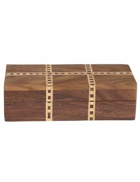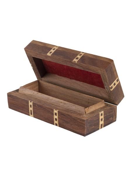 This pretty rectangular box is made from sheesham wood with brass inlays and velvet interior.