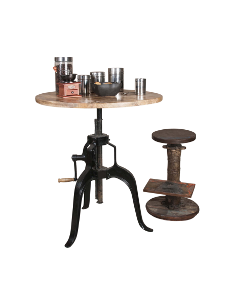 Der moderne und im Industriestil konzipierte Tisch ARJUN ist bereits für sich ein einmaliges Dekorationselement. Die Tischplatte ist durch ein originelles Zahnradsystem zwischen einer Höhe von 79 bis 110cm beliebig verstellbar. Er lässt sich ideal in einer Küche oder einem Wohnzimmer platzieren oder als lässigen Stehtisch verwenden. Die Tischplatte ist aus Akazie gefertigt, das Standbein aus Gusseisen und Metall. Durch die Qualität der verwendeten Materialien und seine Robustheit bleiben Ihnen diese Möbel viele Jahrzehnte erhalten. Wir sind achtsam mit den verwendeten Materialien und begrenzen den Massenverbrauch, um uns nachhaltigeren Werten anzunähern.