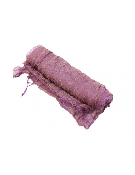Foulard en soie brillante (60%) avec fil de metal (40%) disponible en trois coloris: mauve noir orange. Mauve brun noir ou orange rouille