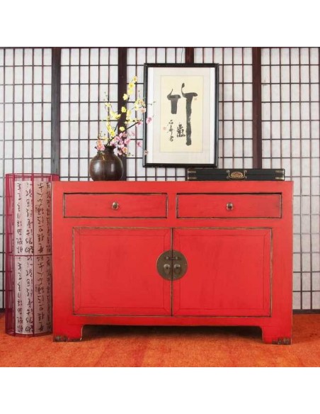 Provenienti direttamente dalla Cina, il nostro buffet TIAN XIAN è composto da due cassetti e due ante tablar centrale, che lo rende estremamente funzionale. Ideale in soggiorno o in camera da letto e la maggior parte del suo spazio di archiviazione, è il supporto ideale per il vostro pezzi decorativi come cornici o la lampada.