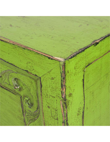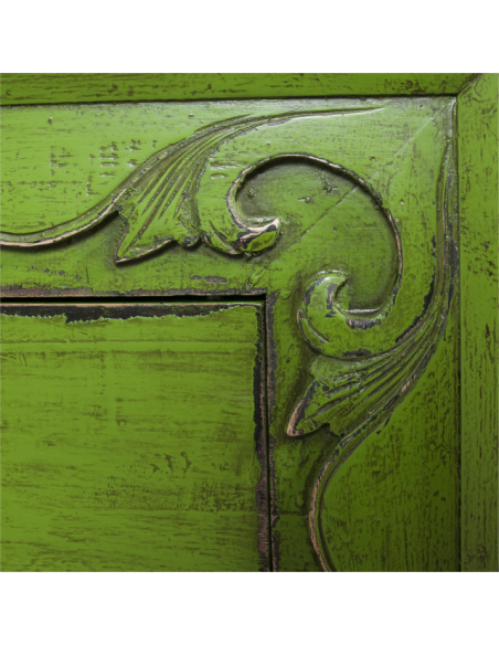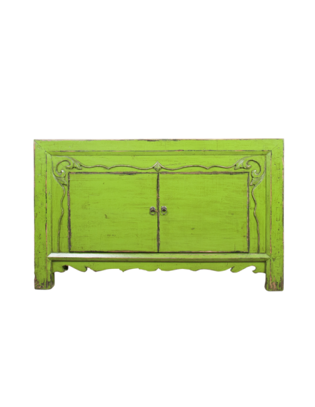 La desserte AIGUO verte a un design très brut et est rehaussée par les détails sculptés sur la devanture. Entièrement peinte à la main, la technique utilisée lui apporte un côté vieilli très tendance. Ses deux portes offrent un bel espace de rangement dans lequel vous avez la possibilité d’ajouter un tablar central afin d’accroître sa fonctionnalité. Idéale dans un salon, elle s’intégrera également très facilement dans une chambre ou un couloir. Disponible en bleu, vert et gris et avec des motifs peints sous la référence MER00489.