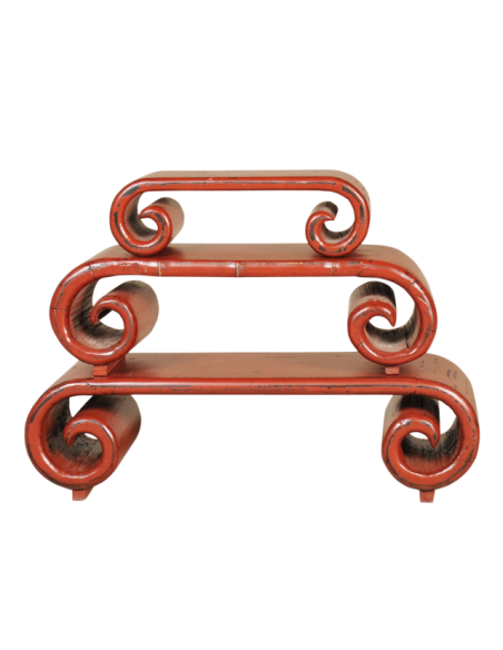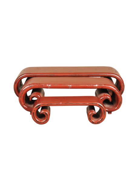 Peuple de nomades, les chinois avaient pour tradition, il y a plus de 1500 ans, de transporter leur mobilier avec eux lors de leurs longs périples. Le banc spirale LUOXUAN est une réplique de ce qui pouvait faire office de banc ou de table à l'époque. Ses volutes ne sont pas sculptées mais arrondies grâce à une méthode ancestrale. Le bois est trempé dans l'eau puis tourné sur lui même. A l'heure actuelle les couleurs vives de ce type de mobilier en font des éléments purement décoratifs qui peuvent servir de support pour des plantes ou d'autres objets ornementaux. Ce banc spirale est disponible en bleu, rouge, noir et brun et en trois tailles.