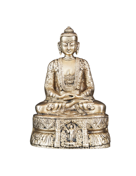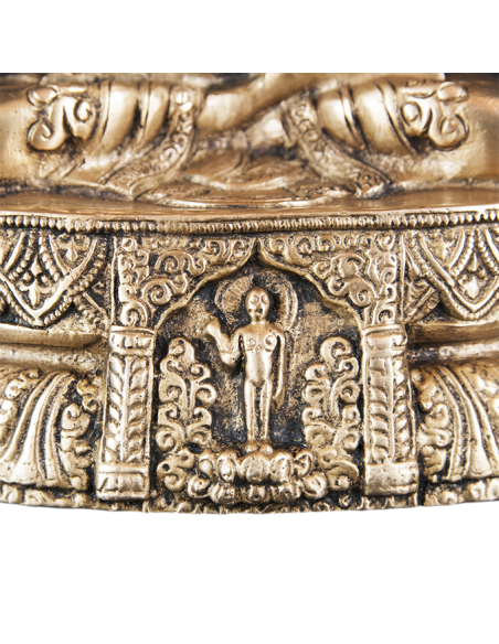 Both massive and elegant, this seated Tibetan Buddha symbolizes knowledge, wisdom, benevolence and compassion. The two hands of Buddah placed one on the other palm open towards the sky materialize the meditation. The bowl he holds is filled with the nectar which purifies ignorance, the source of suffering. Finely worked by hand, this statuette is all in detail. Very beautiful element of decoration, it will come to brighten up a chest of drawers, an entry stand or any other space.