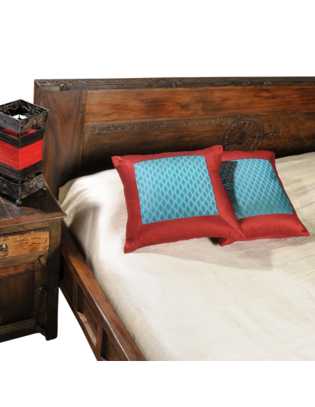 Le coussin est un essentiel de la décoration tout en palliant confort et style à votre intérieur. Qu’il s’agisse d’une chambre, d’un séjour, ou d'un salon, c’est l’accessoire cosy qui liera tout votre foyer. Vous n’avez qu’à opter pour les couleurs, les formes, les tissus. La housse de coussin carrée en polyester rouge et bleu avec des motifs au centre confère une touche chaleureuse et chic à votre pièce de vie.
