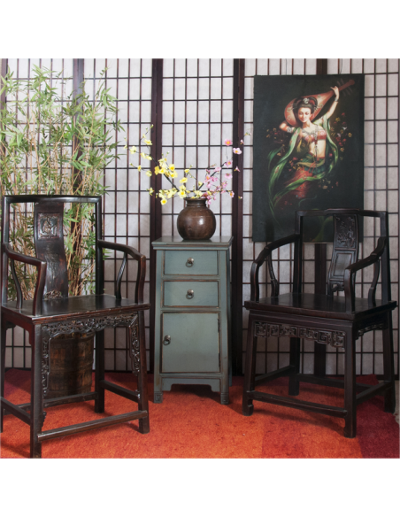 Più resistenti e più flessibile rispetto a la quercia, l'olmo è un legno utilizzato principalmente in lavori di falegnameria e di carpenteria, che è stato utilizzato per la costruzione di case a graticcio. Si tratta di una ditta di legno, abbastanza duro e con un grano di bella. E di solito va per il rosa, il grigio e consente di produrre mobili di pregio. Tutti i nostri mobili in olmo dipinta dipinta a mano dai nostri artigiani in cinese, in modo da preservare la bellezza di questi dipinti, si consiglia di non esporre direttamente le parti al sole e tenere lontano da fonti di calore e aggressioni esterne come la pioggia e umidità. Manutenzione : per rimuovere la polvere, un panno umido è l'ideale e poi asciugare con un panno morbido e sec. Nota: Foto non contrattuali. I colori e le dimensioni possono variare leggermente a seconda degli arrivi.